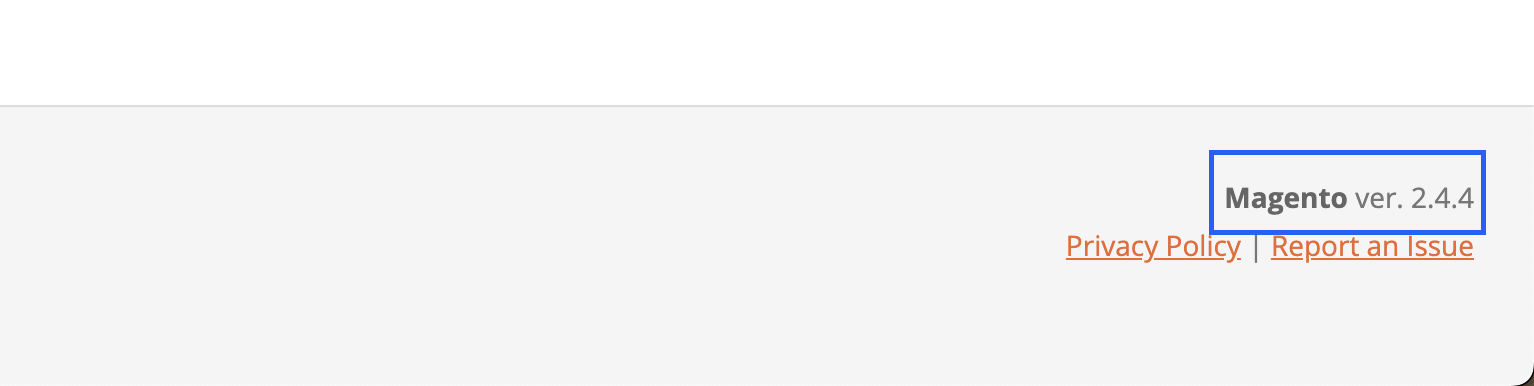 Once you have logged in to your Magento Admin, scroll to the bottom of any page and in the right-hand of the footer area you will see ‘Magento ver.’ followed by a number. This number is your Magento version